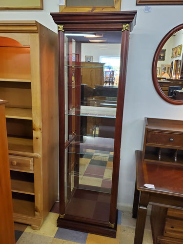 Vintage Oak Curio Display Cabinet With Lights and Key